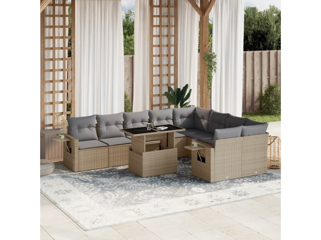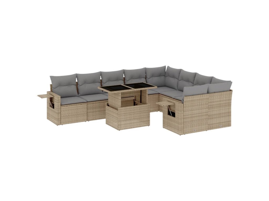 10dílná zahradní sedací souprava s poduškami béžová polyratan 3268129