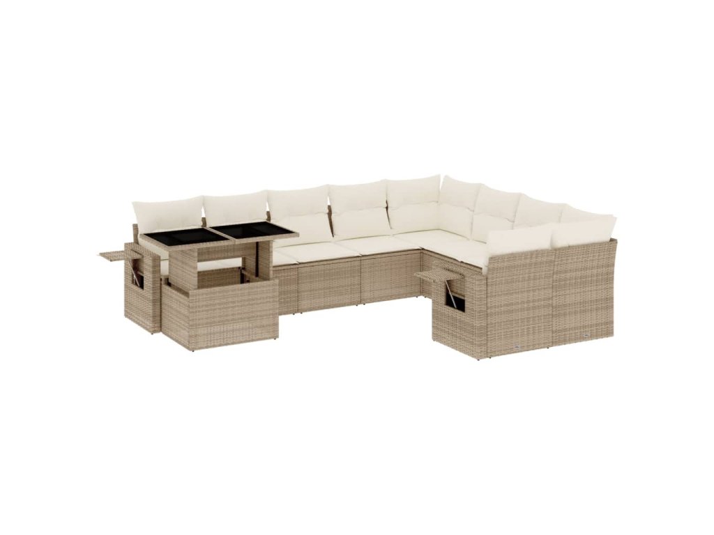 10dílná zahradní sedací souprava s poduškami béžová polyratan 3268138