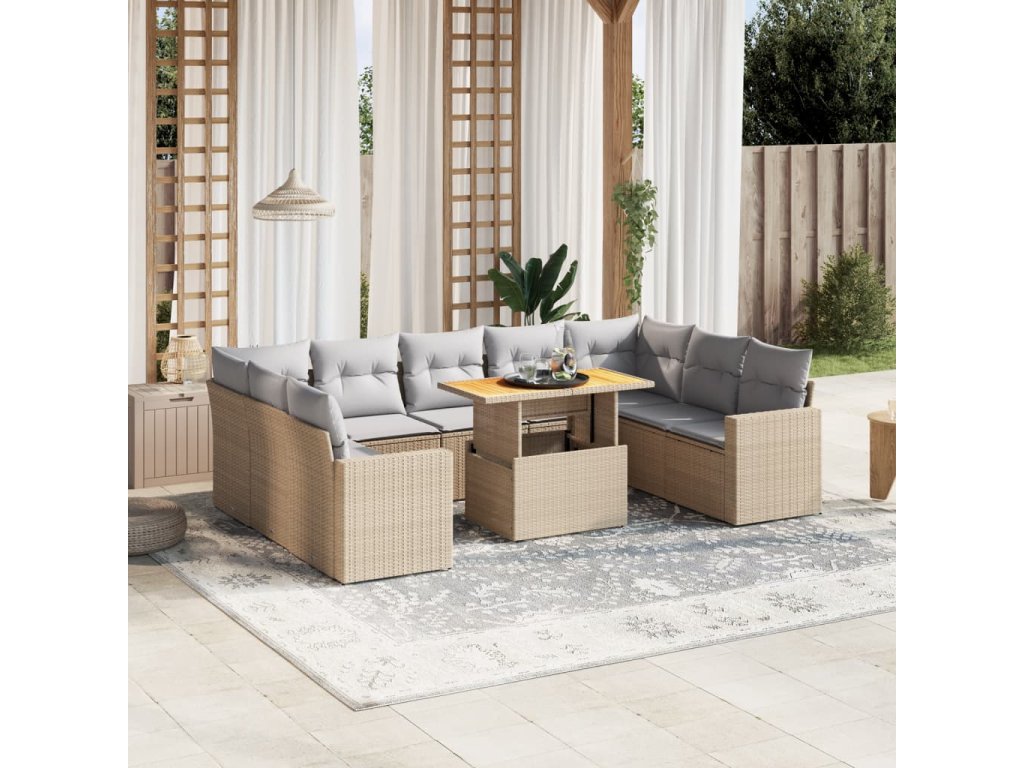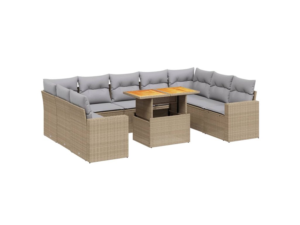 10dílná zahradní sedací souprava s poduškami béžová polyratan 3271458