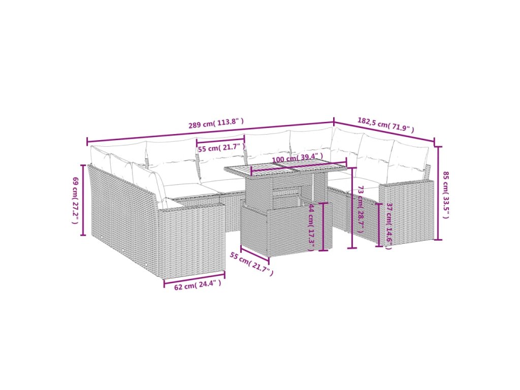 Tato zahradní sedací souprava je dokonalým doplňkem vaší zahrady, terasy nebo dvorku a poskytne vám pohodlné a příjemné místo, kde si můžete povídat s rodinou a přáteli nebo jen tak odpočívat a užívat si pobyt venku.