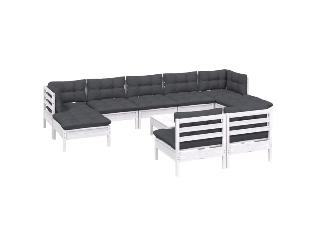 10dílná zahradní sedací souprava s poduškami bílá borovice 3097110