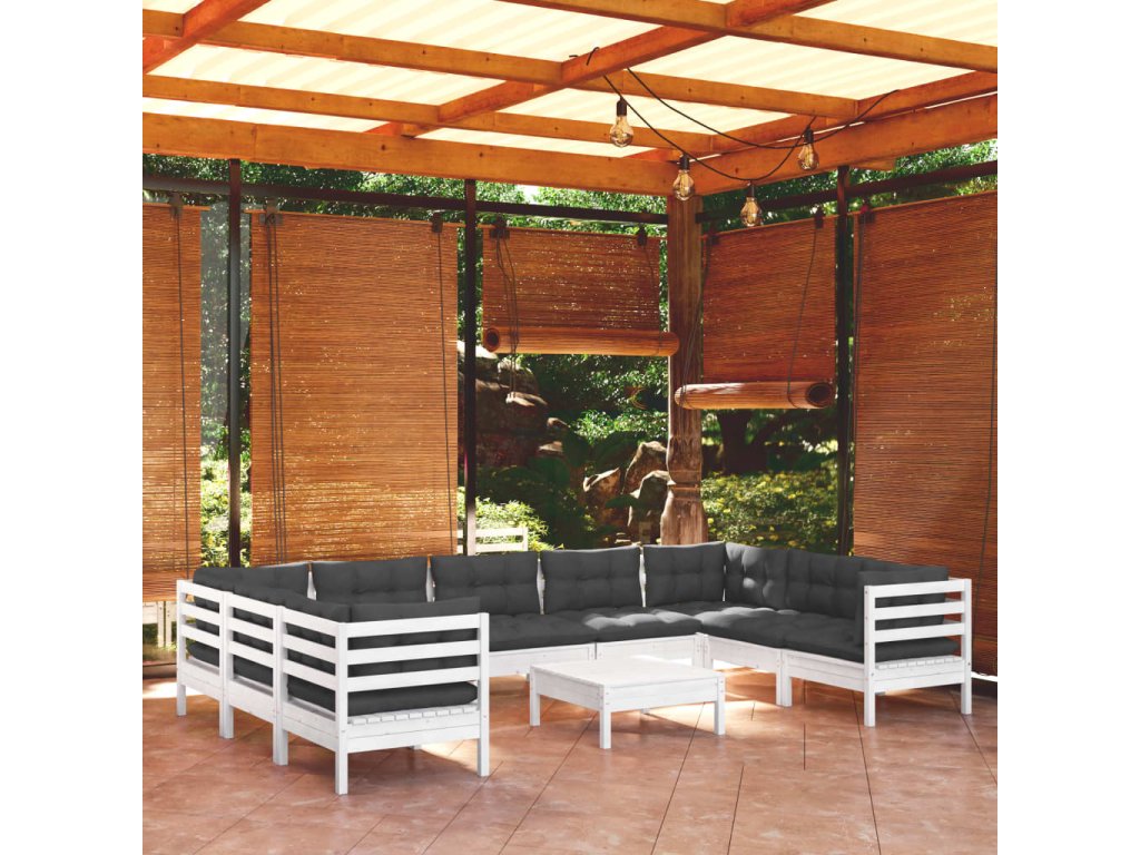 10dílná zahradní sedací souprava s poduškami bílá borovice 3097326