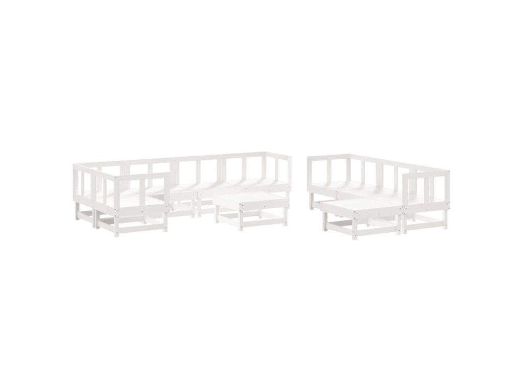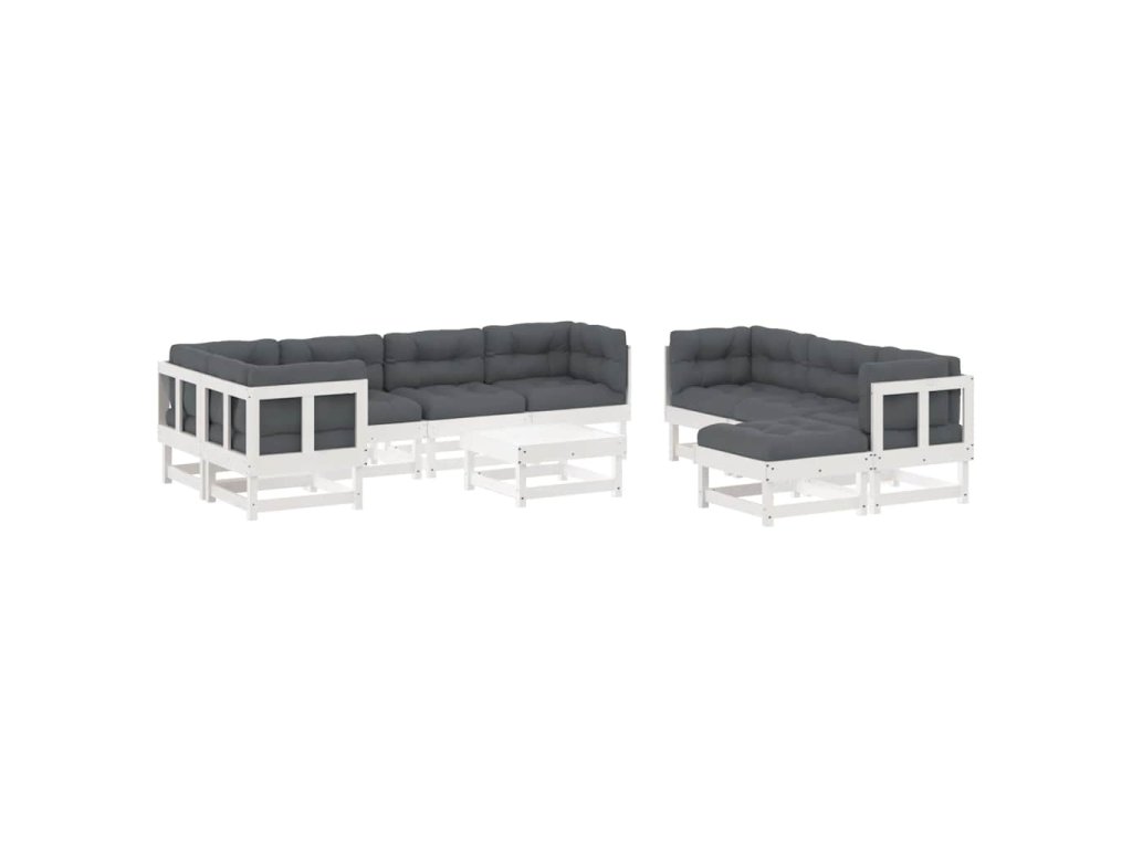 10dílná zahradní sedací souprava s poduškami bílá masivní dřevo 3186075