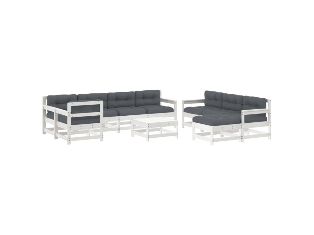10dílná zahradní sedací souprava s poduškami bílá masivní dřevo 3186082