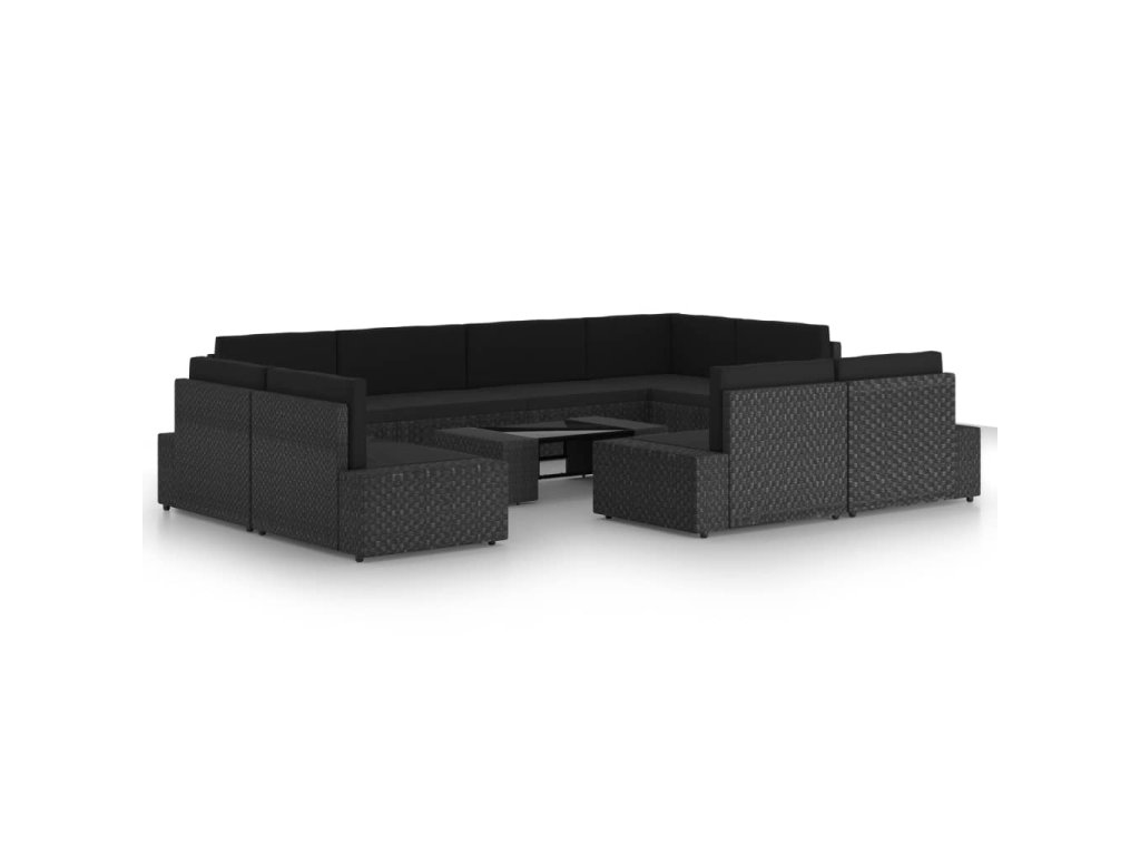 10dílná zahradní sedací souprava s poduškami černá polyratan 3067137
