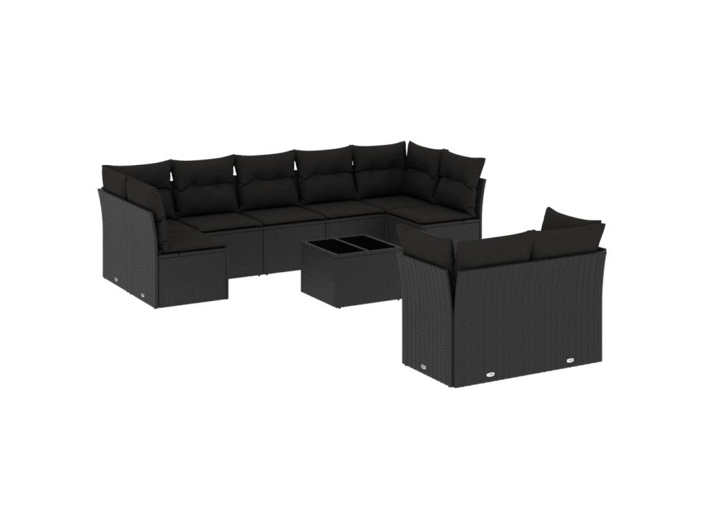 10dílná zahradní sedací souprava s poduškami černá polyratan 3218155