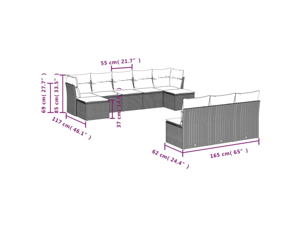 10dílná zahradní sedací souprava s poduškami černá polyratan 3218285