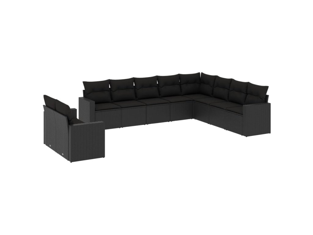 10dílná zahradní sedací souprava s poduškami černá polyratan 3219155