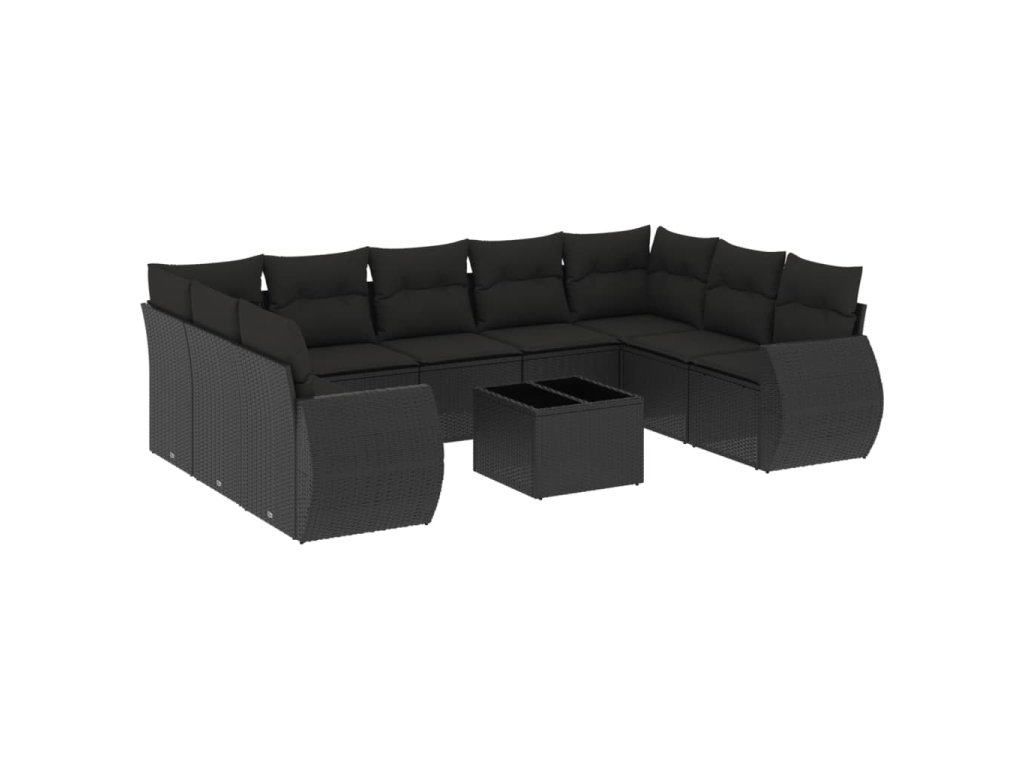 10dílná zahradní sedací souprava s poduškami černá polyratan 3221804