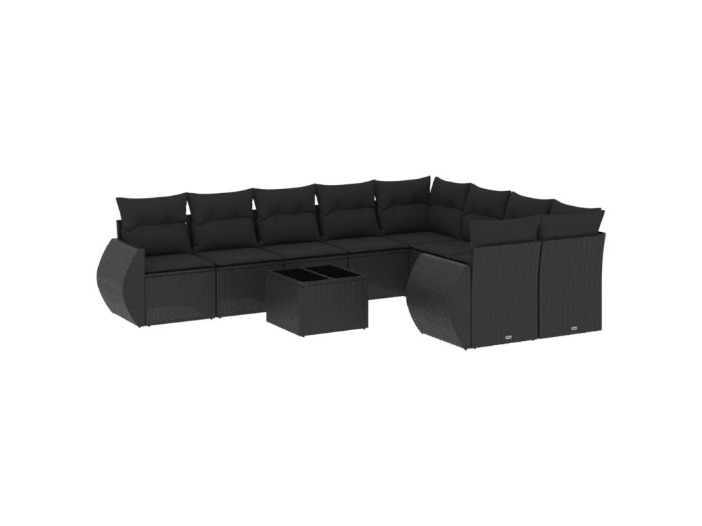 10dílná zahradní sedací souprava s poduškami černá polyratan 3221844