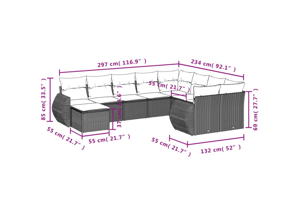10dílná zahradní sedací souprava s poduškami černá polyratan 3221854