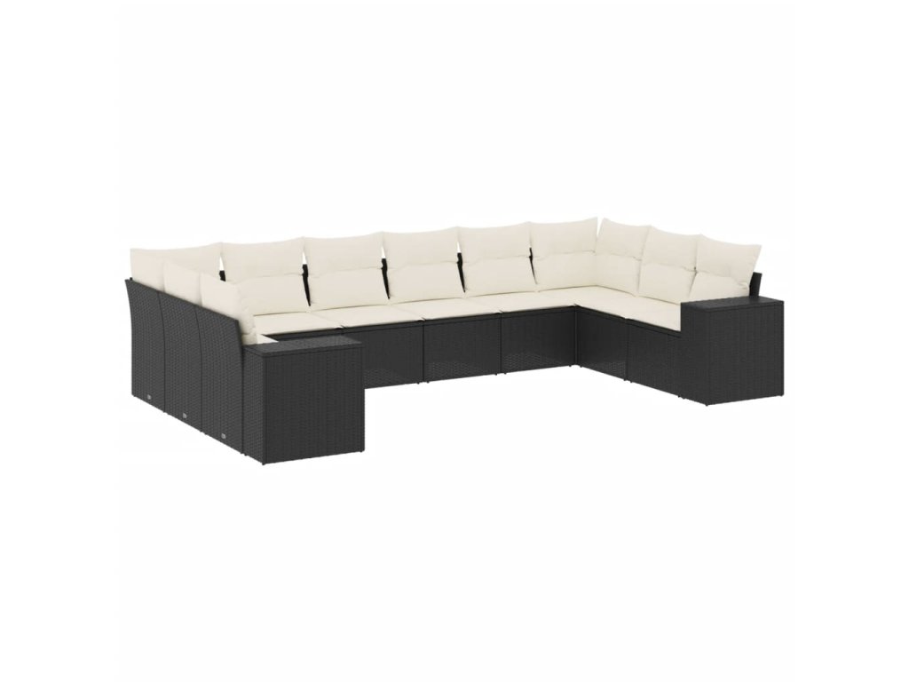 10dílná zahradní sedací souprava s poduškami černá polyratan 3223065