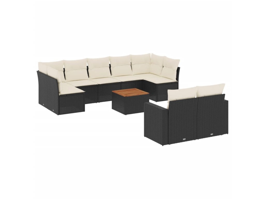 10dílná zahradní sedací souprava s poduškami černá polyratan 3224271