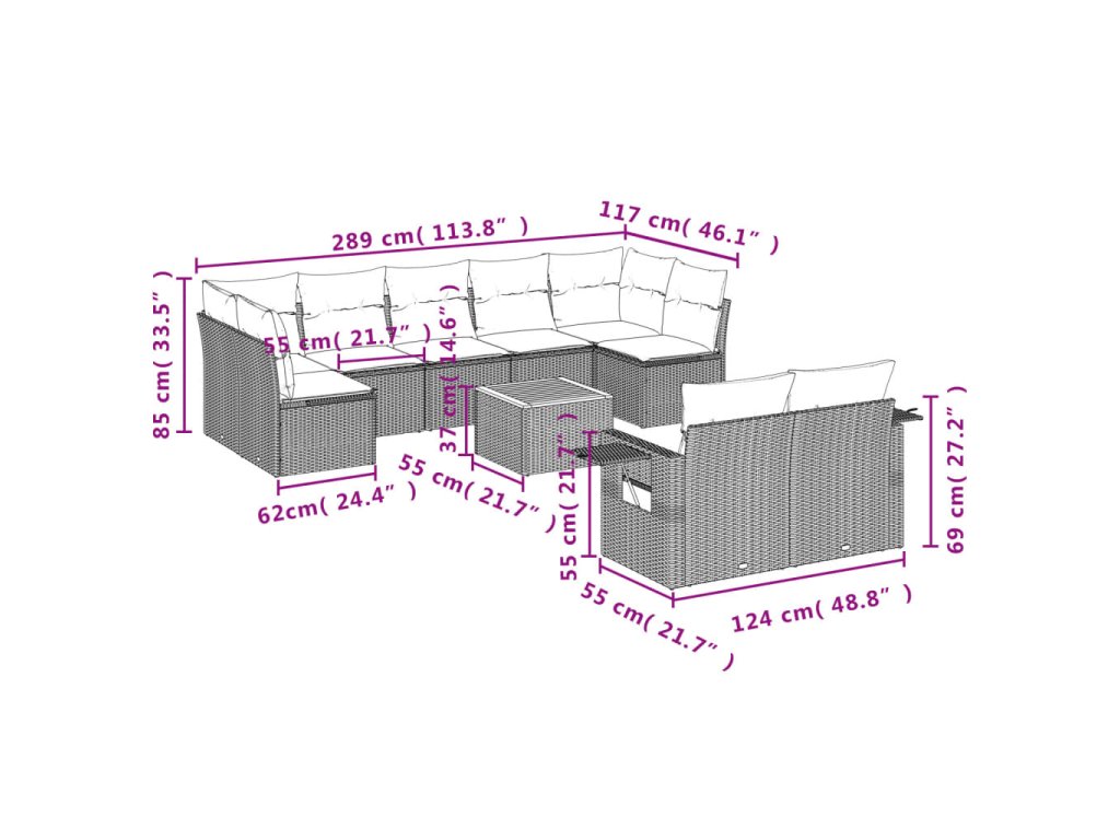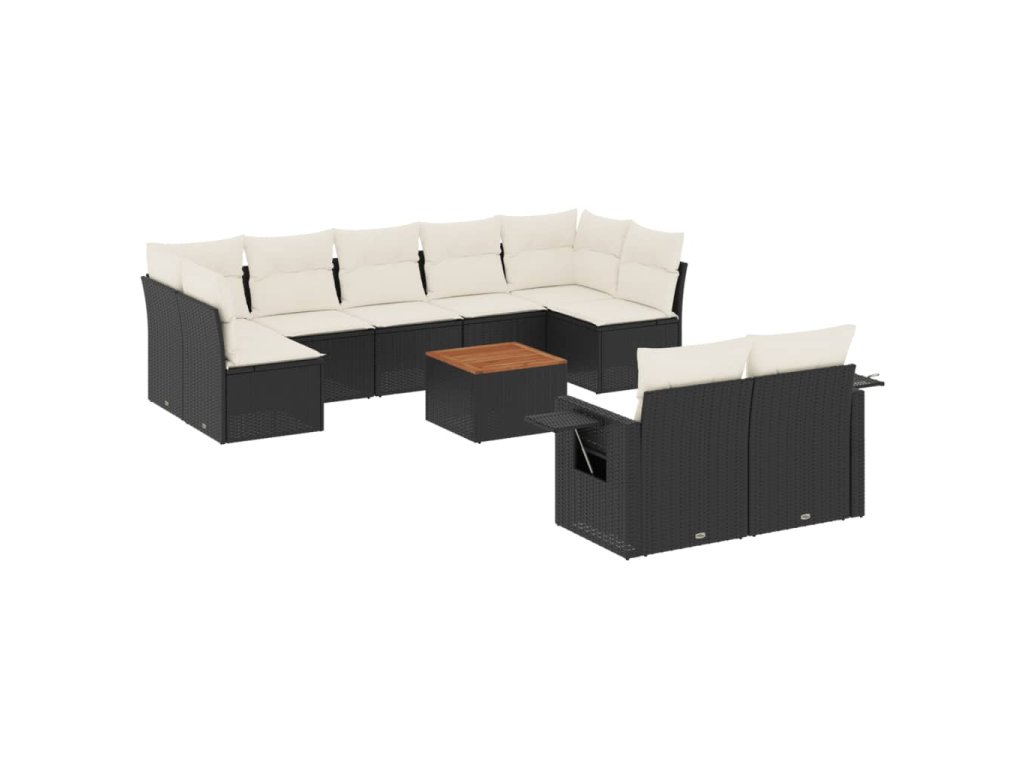 10dílná zahradní sedací souprava s poduškami černá polyratan 3224712