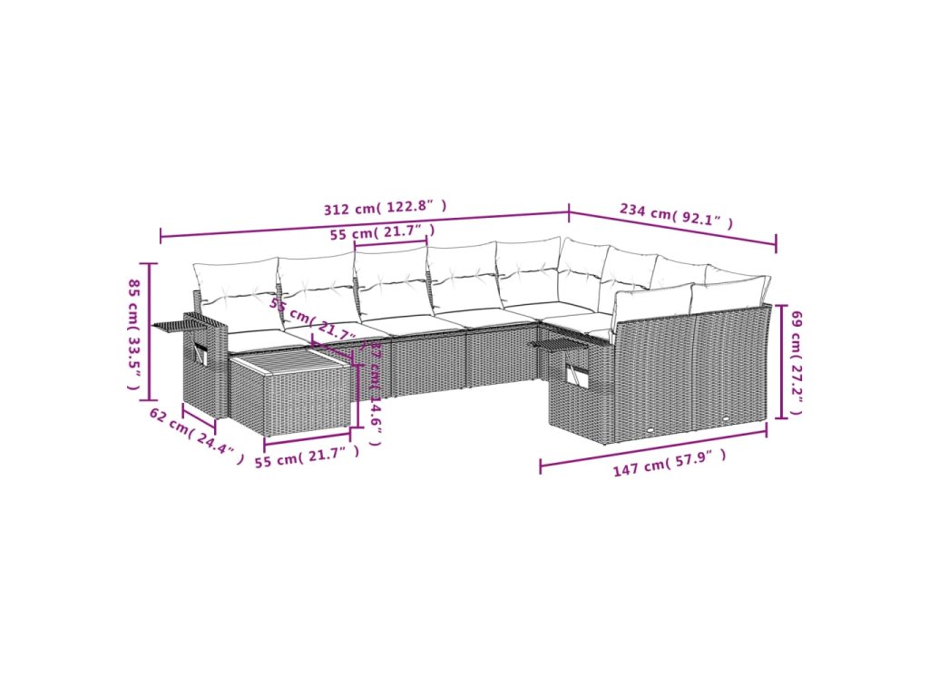 10dílná zahradní sedací souprava s poduškami černá polyratan 3224726