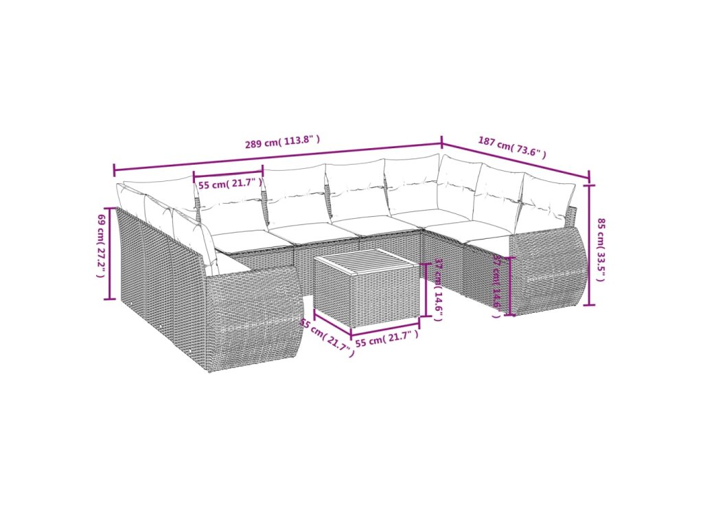 10dílná zahradní sedací souprava s poduškami černá polyratan 3225146