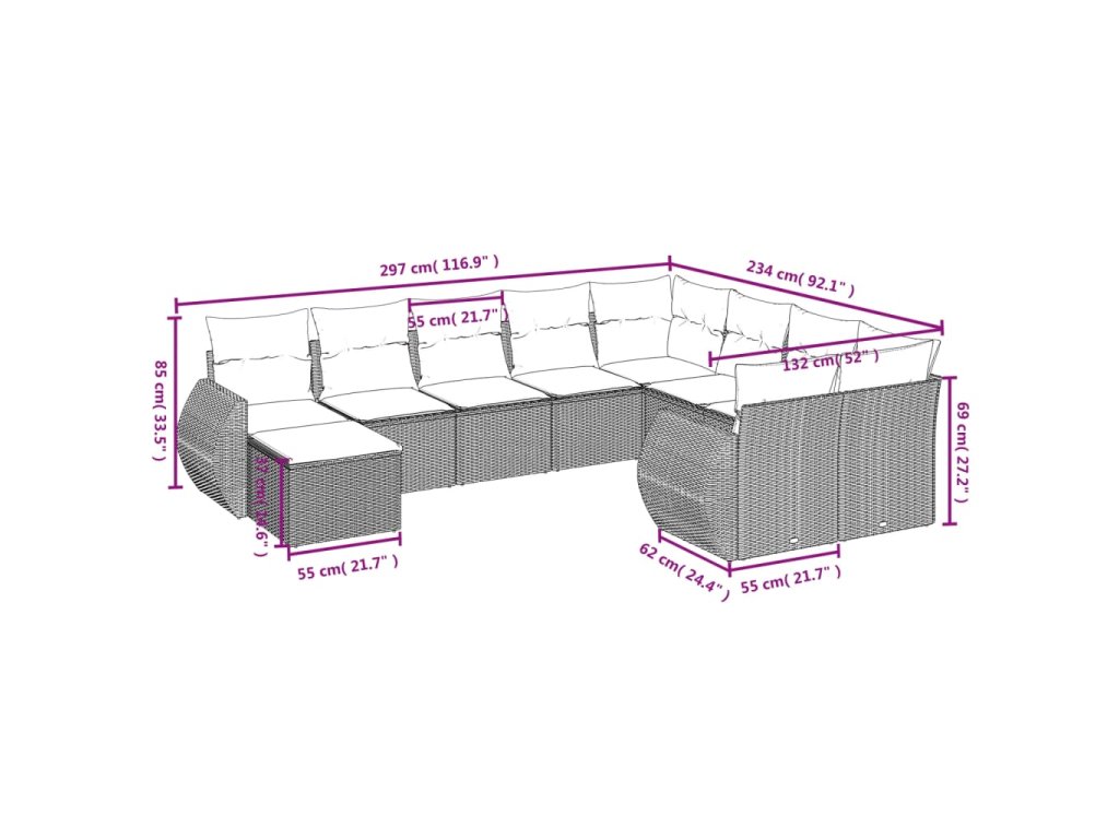 10dílná zahradní sedací souprava s poduškami černá polyratan 3225167