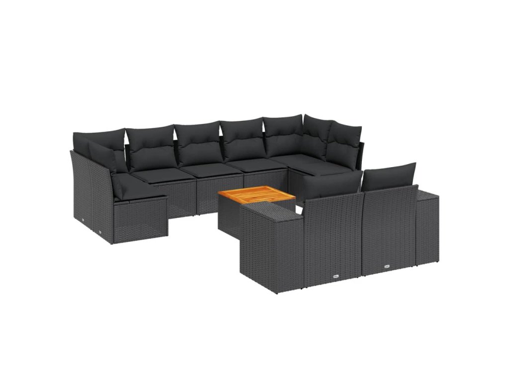 10dílná zahradní sedací souprava s poduškami černá polyratan 3225593