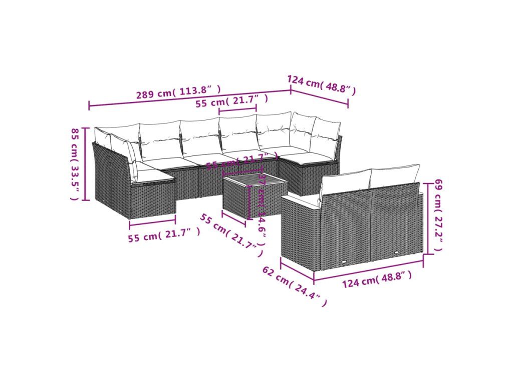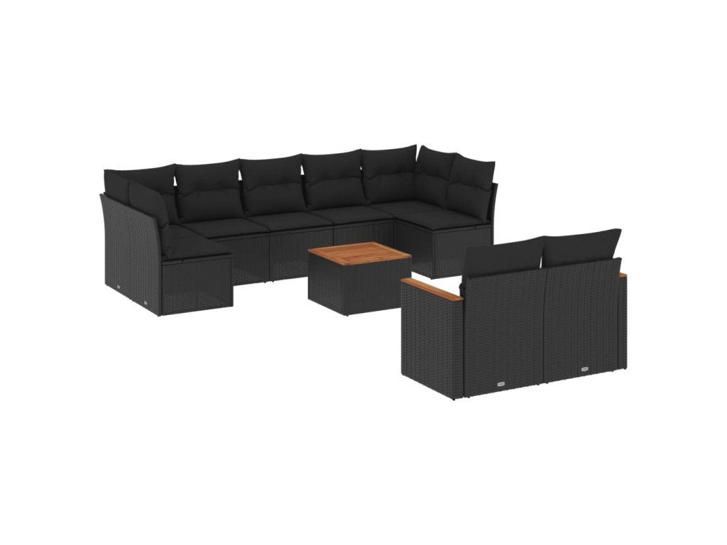 10dílná zahradní sedací souprava s poduškami černá polyratan 3226293