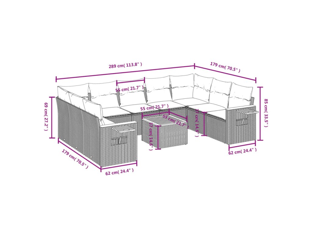 10dílná zahradní sedací souprava s poduškami černá polyratan 3227120