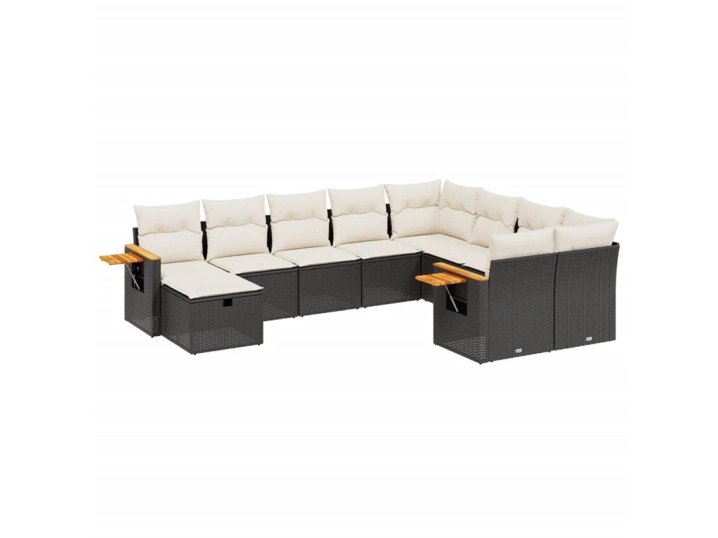10dílná zahradní sedací souprava s poduškami černá polyratan 3227155