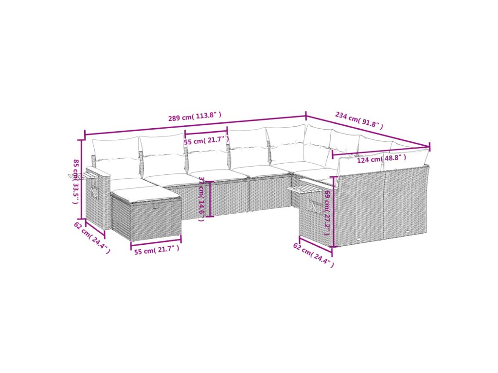 Tato zahradní sedací souprava je dokonalým doplňkem vaší zahrady, terasy nebo dvorku a poskytne vám pohodlné a příjemné místo, kde si můžete povídat s rodinou a přáteli nebo jen tak odpočívat a užívat si pobyt venku.