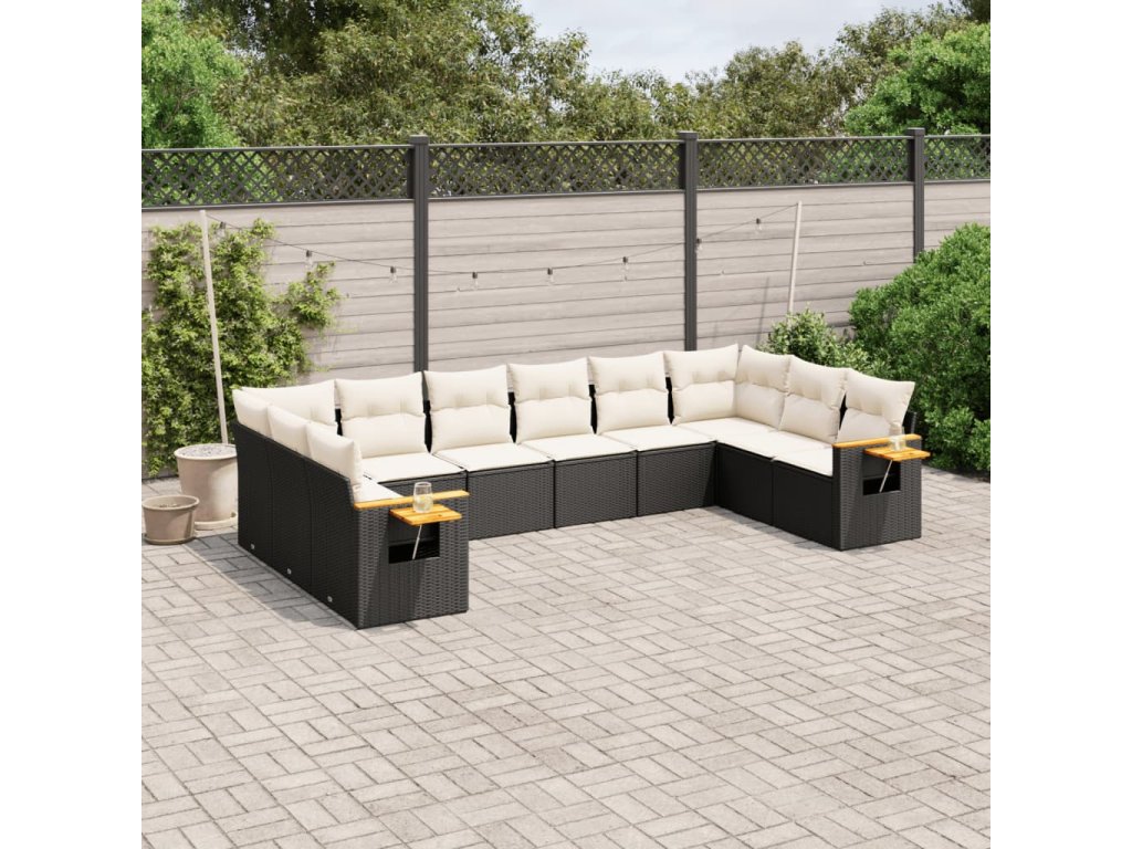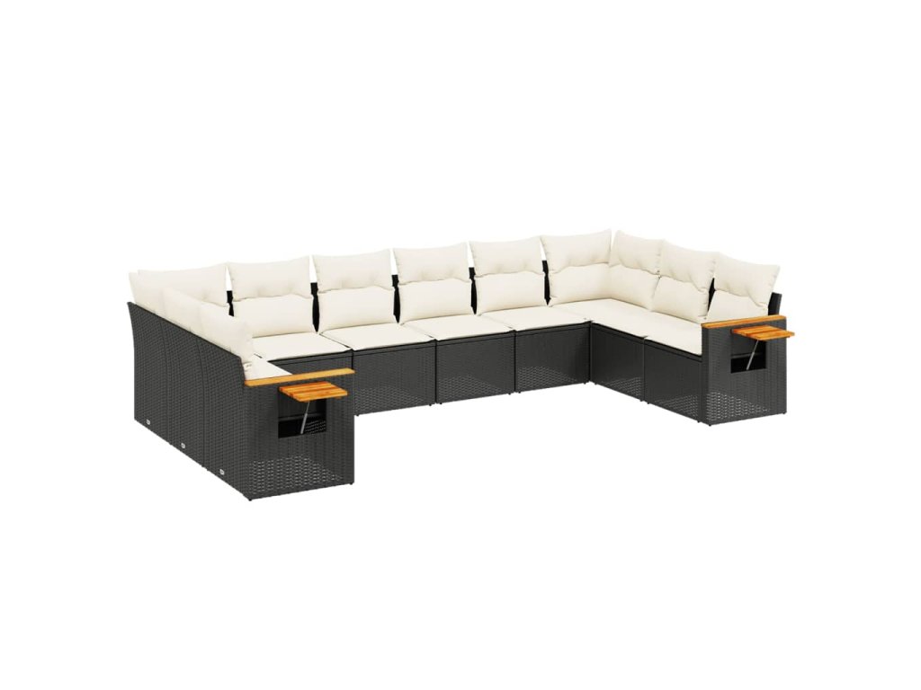 10dílná zahradní sedací souprava s poduškami černá polyratan 3227162