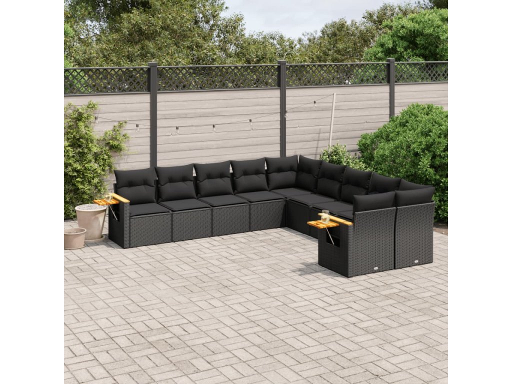 10dílná zahradní sedací souprava s poduškami černá polyratan 3227189