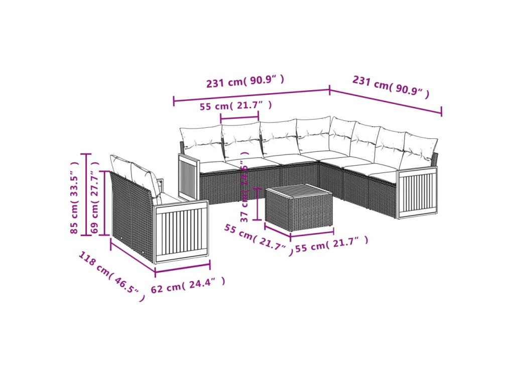 - Modulární design: Tato sada venkovního nábytku se vyznačuje modulární konstrukcí, je tedy zcela flexibilní a lze ji snadno přemisťovat, takže si můžete uspořádat venkovní nábytek dle vašich potřeb.