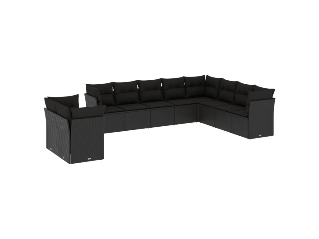 10dílná zahradní sedací souprava s poduškami černá polyratan 3249694