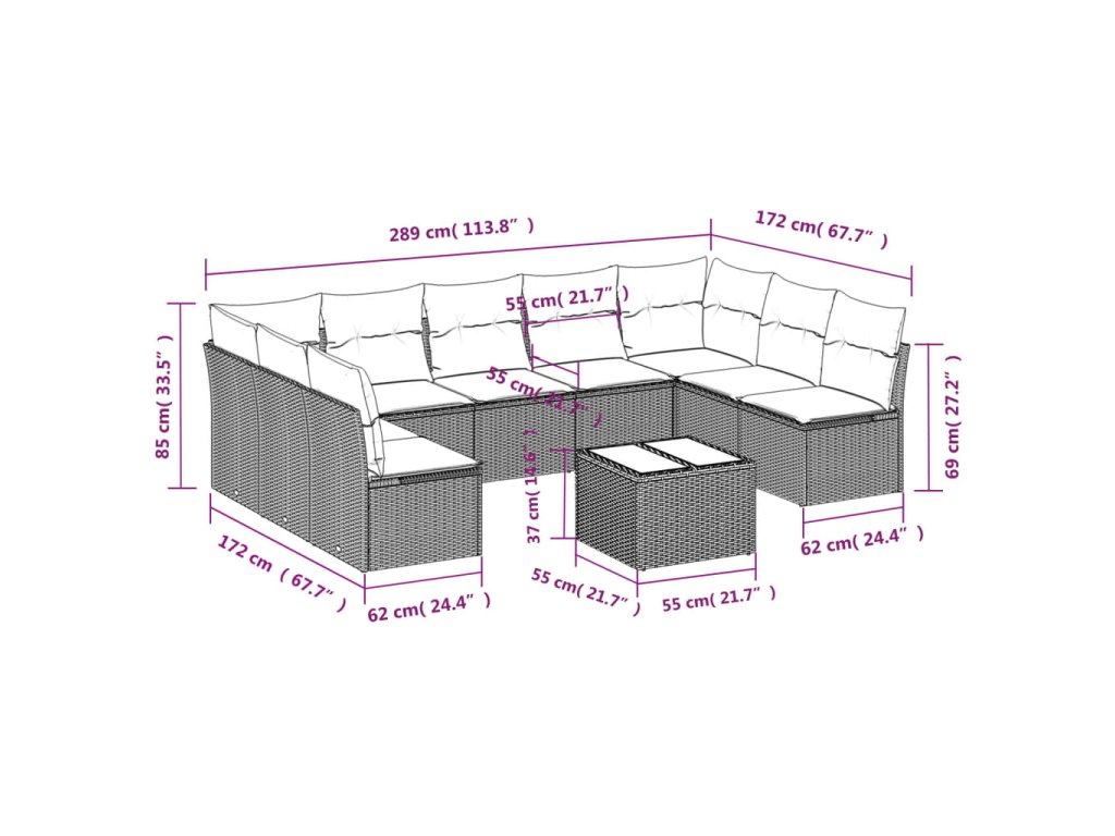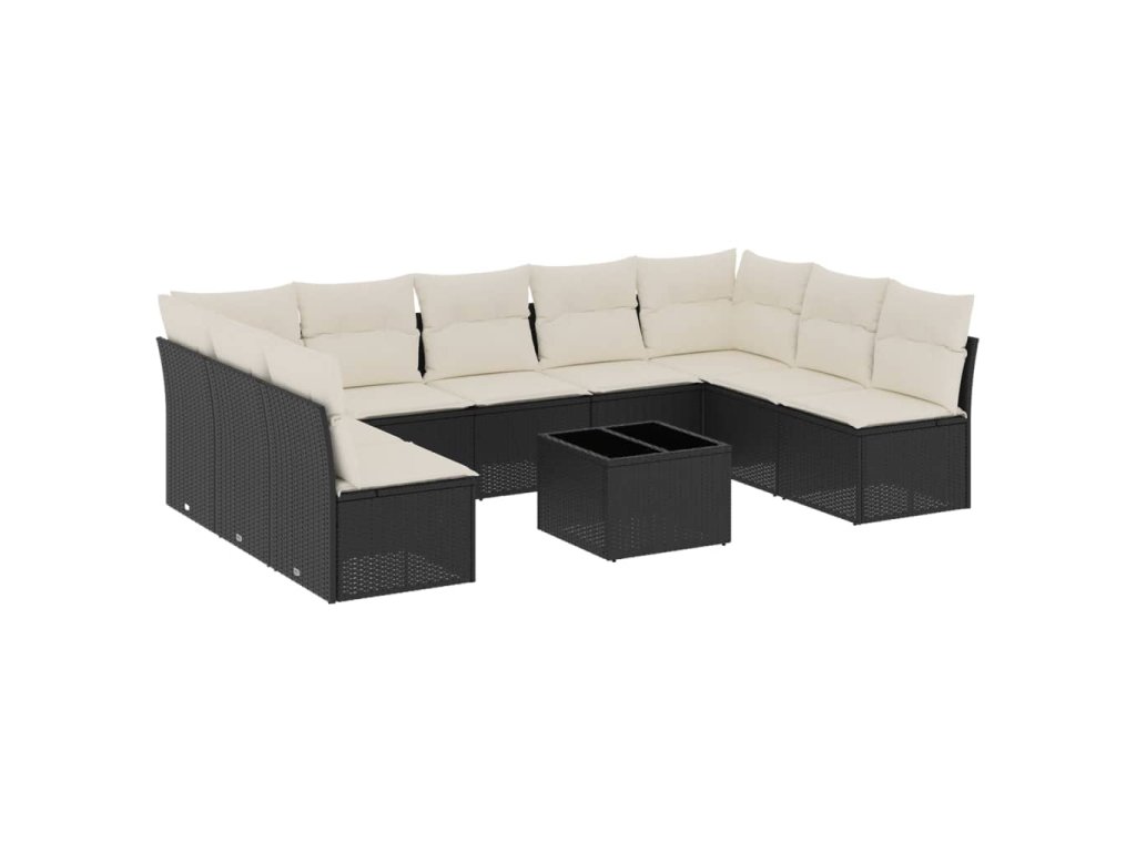 10dílná zahradní sedací souprava s poduškami černá polyratan 3249915