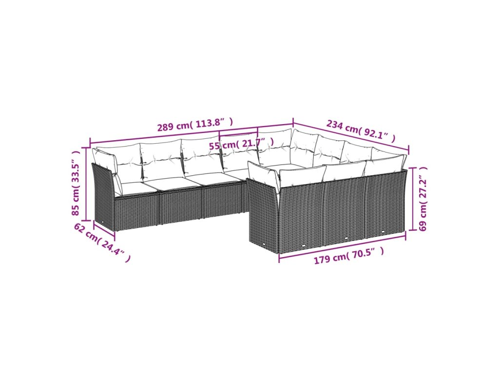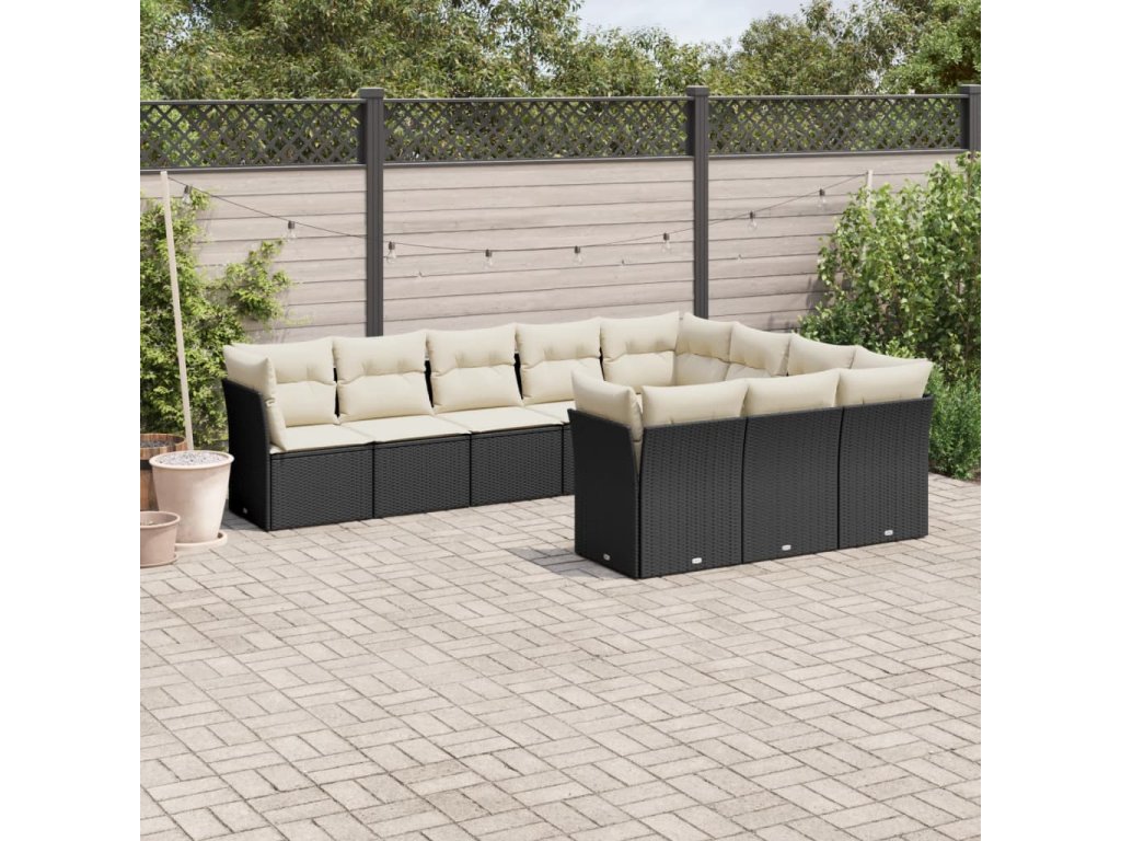 10dílná zahradní sedací souprava s poduškami černá polyratan 3250055