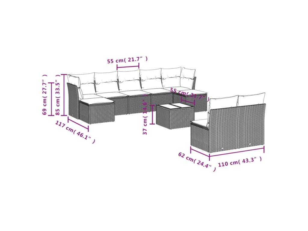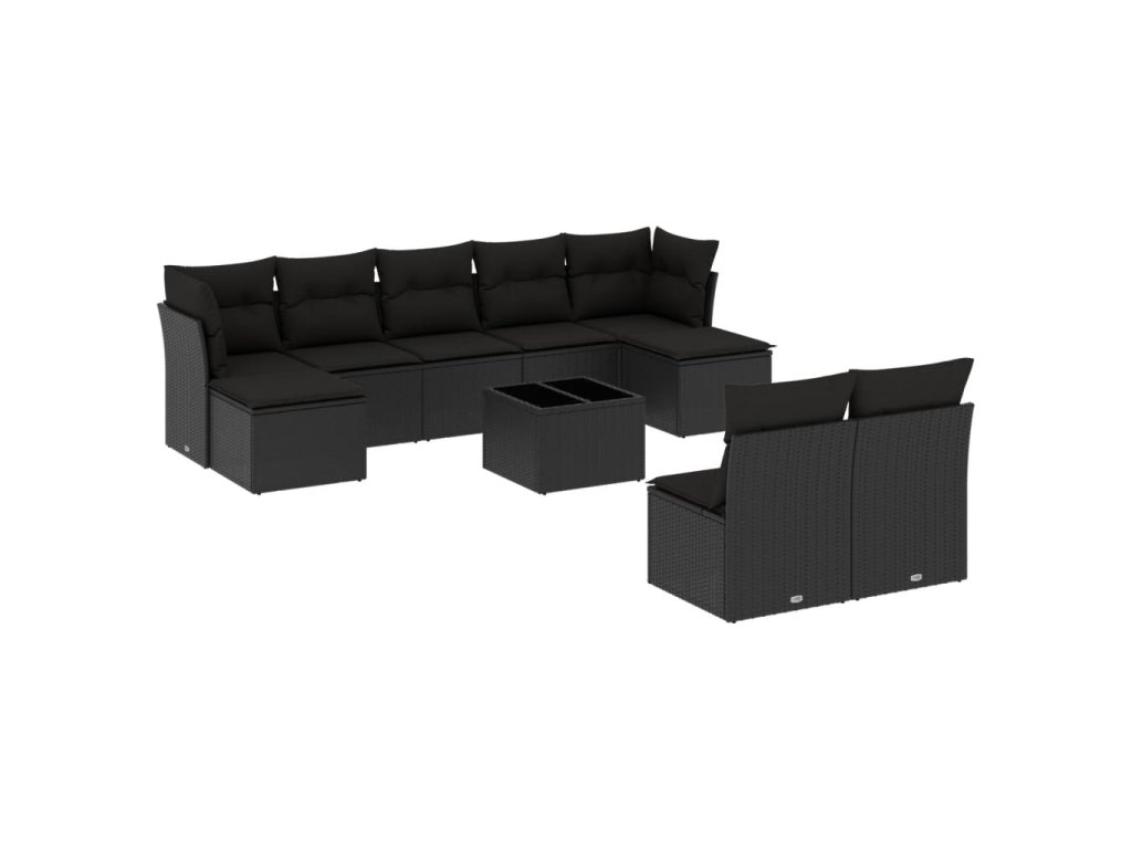 10dílná zahradní sedací souprava s poduškami černá polyratan 3250114