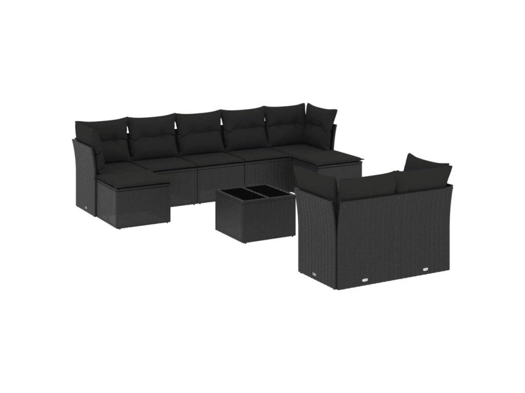10dílná zahradní sedací souprava s poduškami černá polyratan 3250154