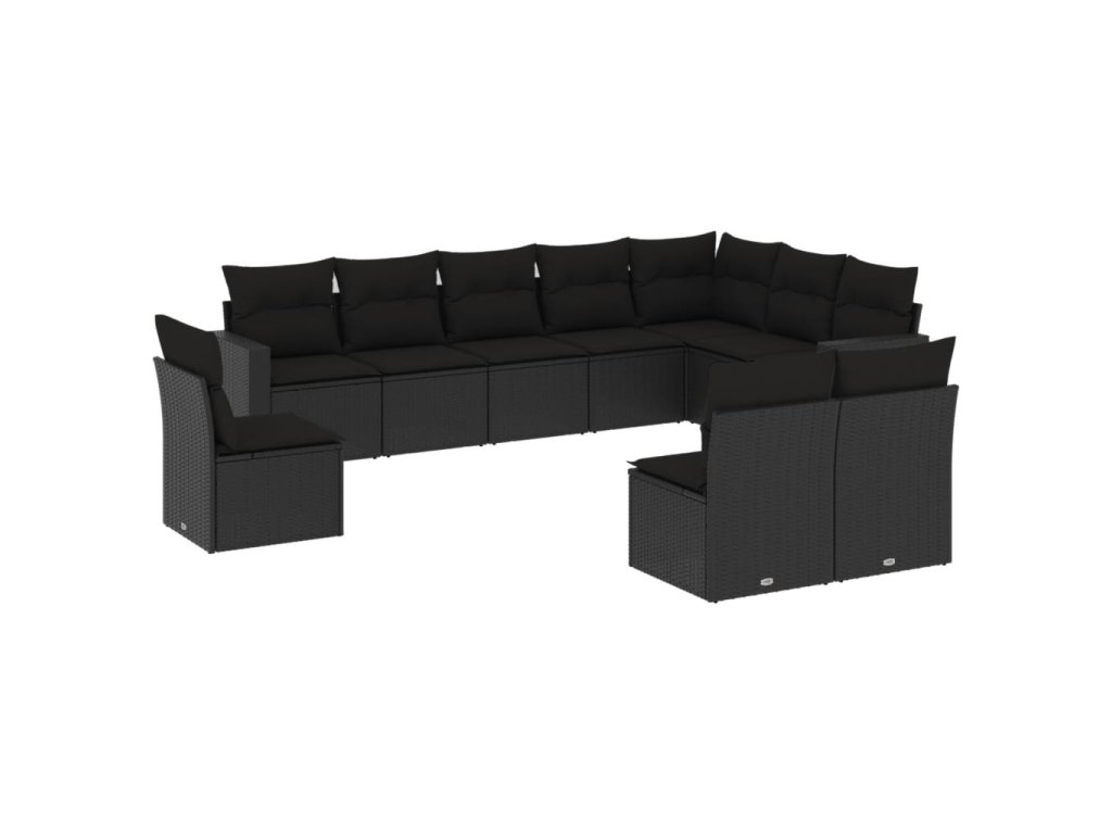 10dílná zahradní sedací souprava s poduškami černá polyratan 3251442