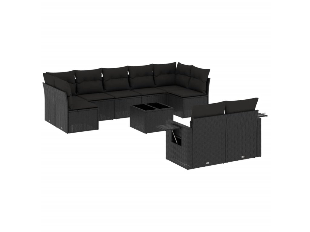 10dílná zahradní sedací souprava s poduškami černá polyratan 3252962