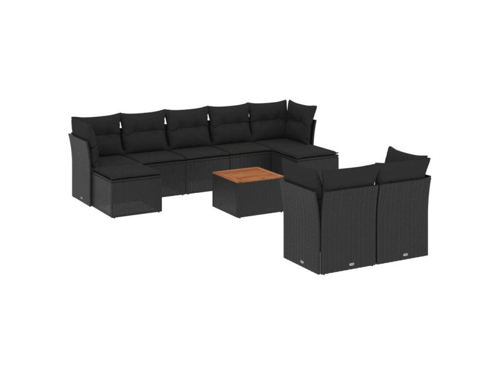 10dílná zahradní sedací souprava s poduškami černá polyratan 3256202