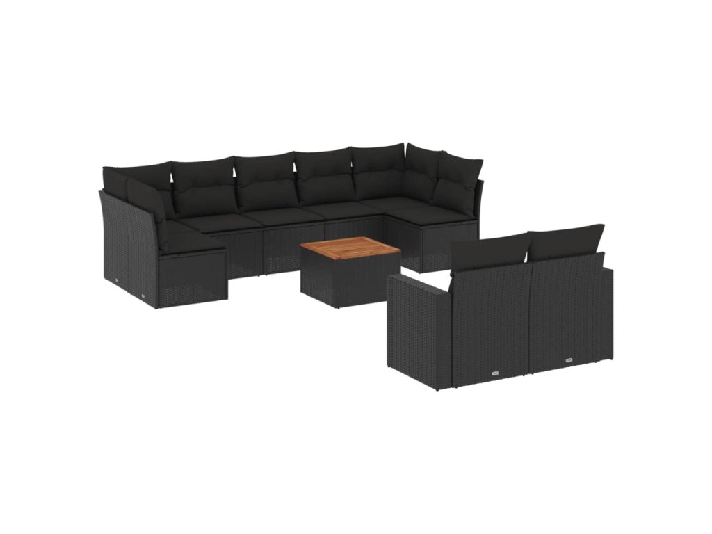 10dílná zahradní sedací souprava s poduškami černá polyratan 3256601