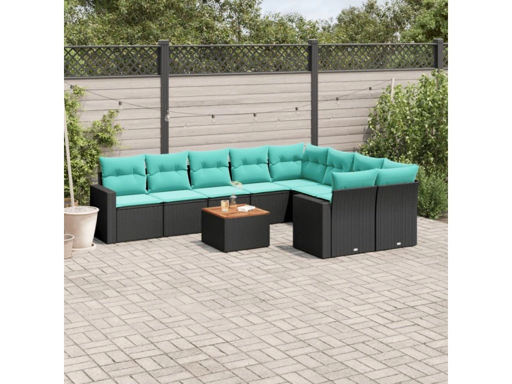 10dílná zahradní sedací souprava s poduškami černá polyratan 3256610