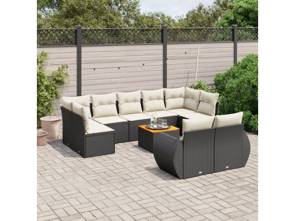 10dílná zahradní sedací souprava s poduškami černá polyratan 3257484