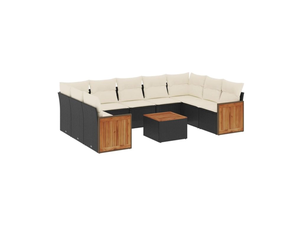 10dílná zahradní sedací souprava s poduškami černá polyratan 3260362
