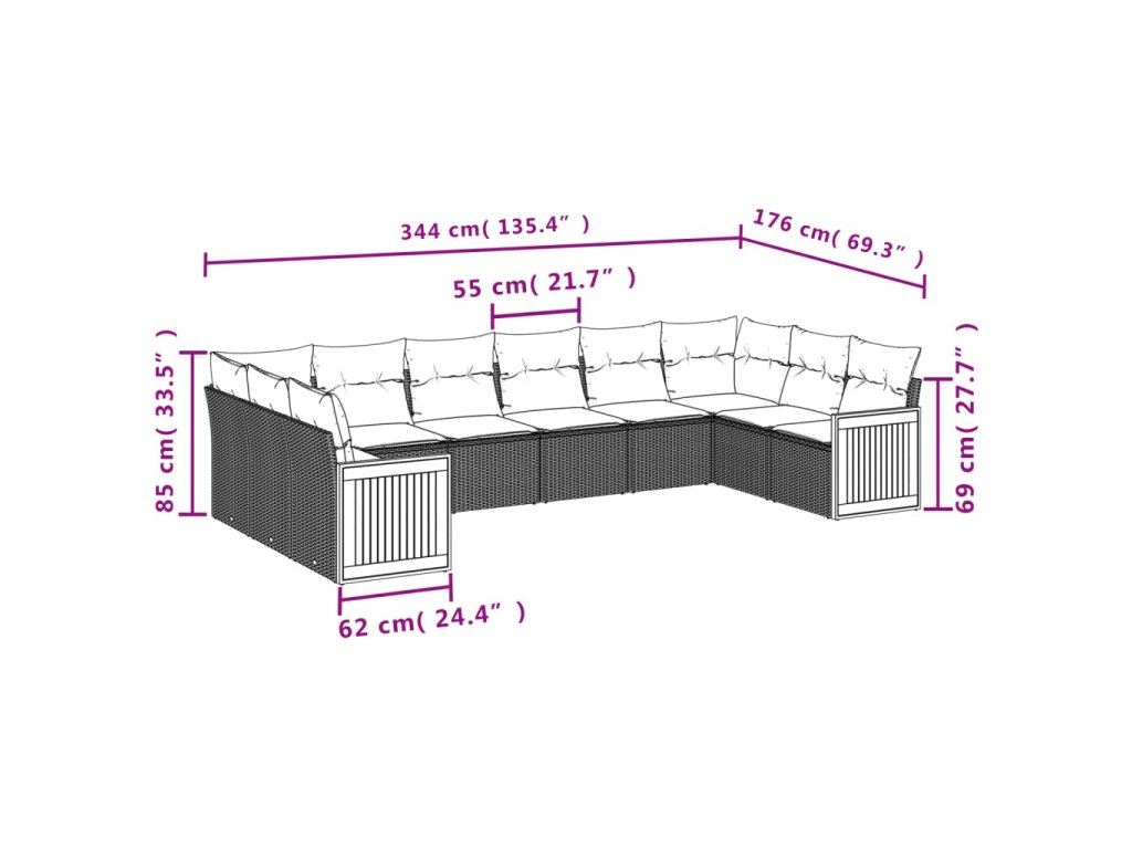 10dílná zahradní sedací souprava s poduškami černá polyratan 3260404