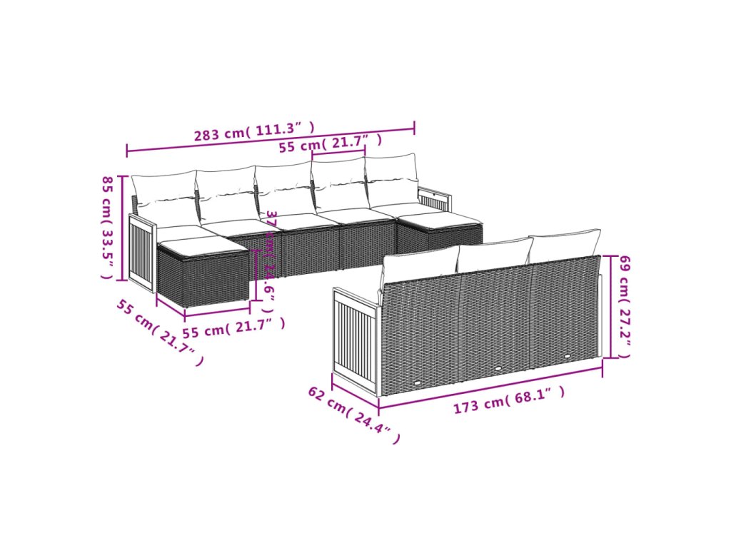 10dílná zahradní sedací souprava s poduškami černá polyratan 3260494