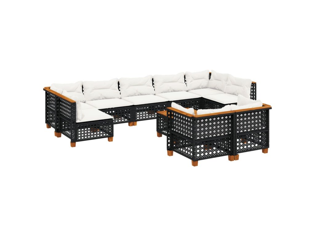 10dílná zahradní sedací souprava s poduškami černá polyratan 3261998