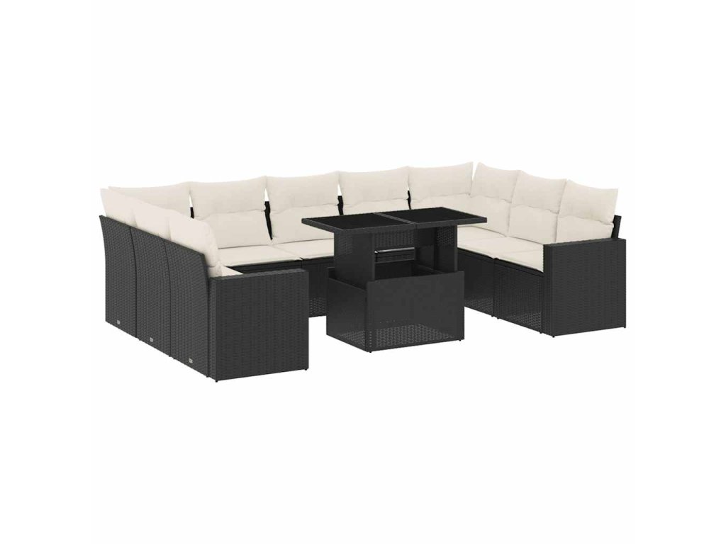 10dílná zahradní sedací souprava s poduškami černá polyratan 3267476