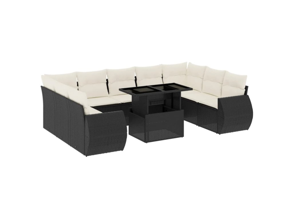 10dílná zahradní sedací souprava s poduškami černá polyratan 3268736