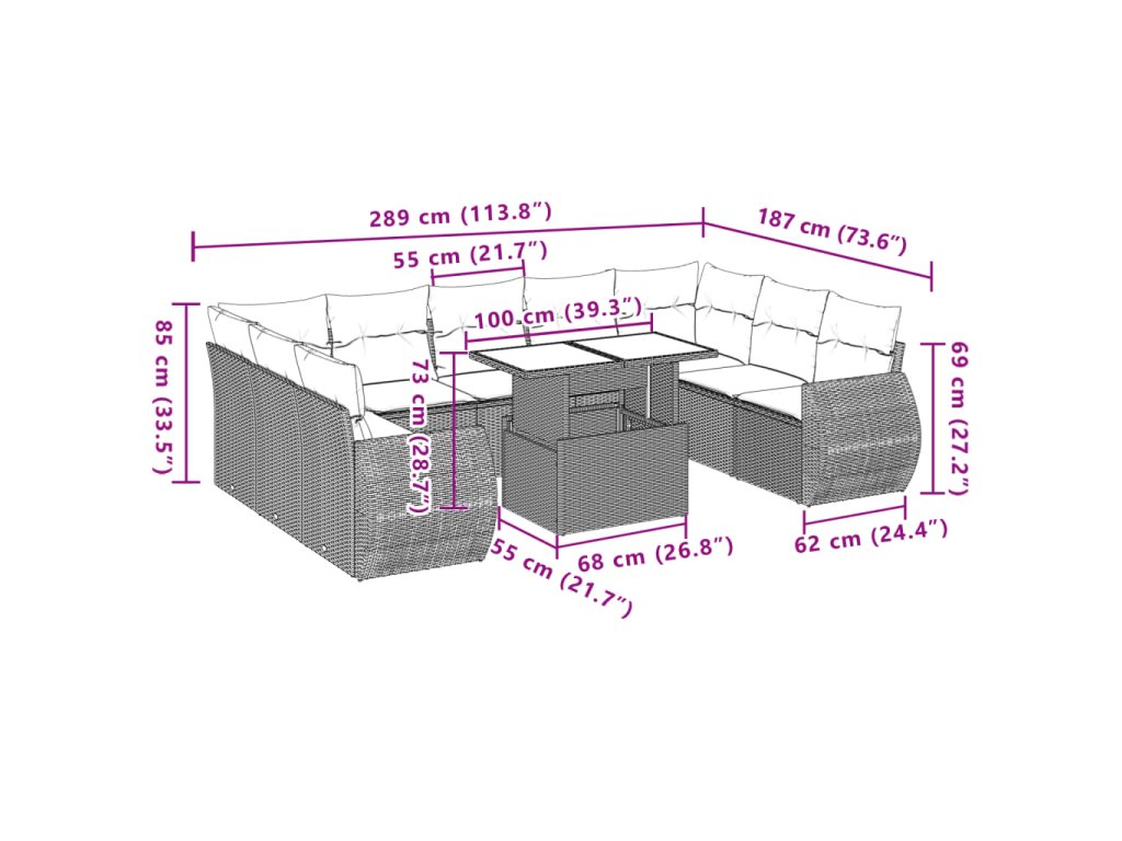 Tato zahradní sedací souprava je dokonalým doplňkem vaší zahrady, terasy nebo dvorku a poskytne vám pohodlné a příjemné místo, kde si můžete povídat s rodinou a přáteli nebo jen tak odpočívat a užívat si pobyt venku.