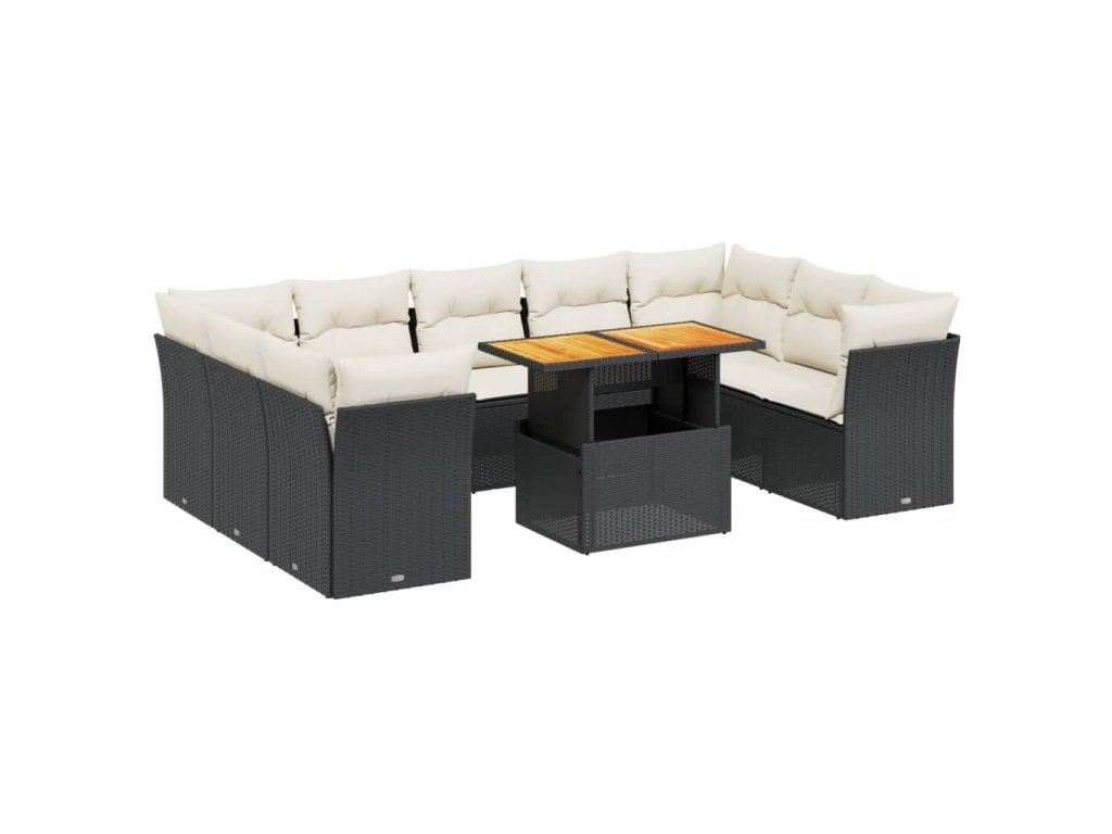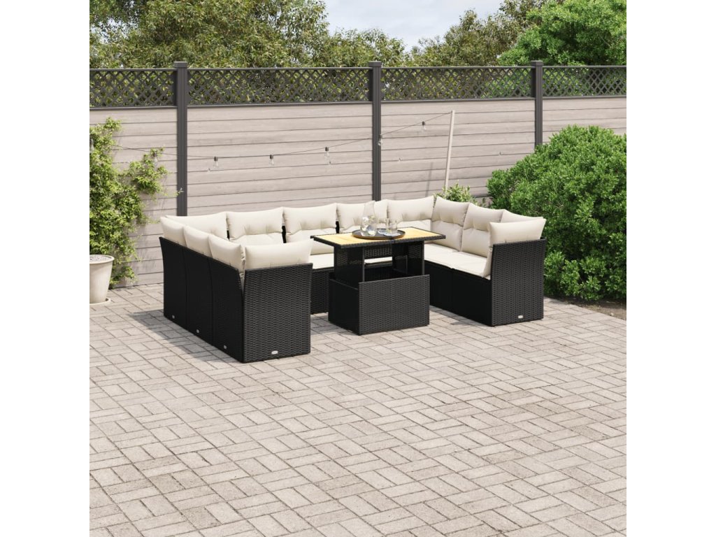 10dílná zahradní sedací souprava s poduškami černá polyratan 3270993