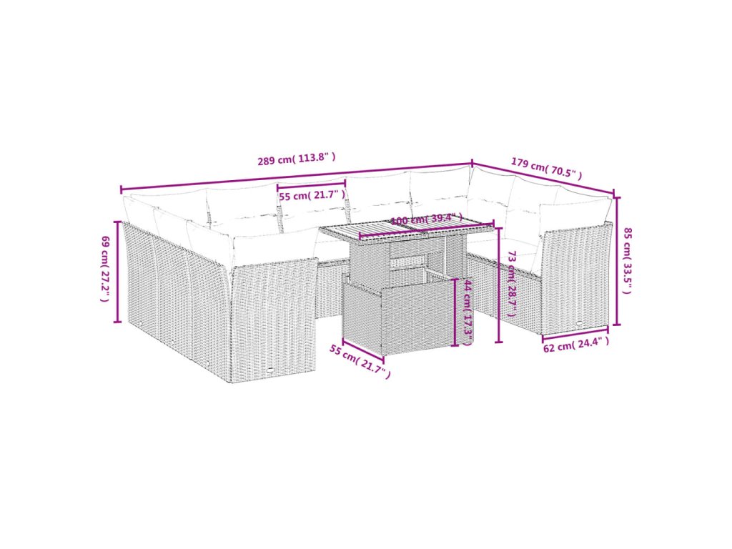 Tato zahradní sedací souprava je dokonalým doplňkem vaší zahrady, terasy nebo dvorku a poskytne vám pohodlné a příjemné místo, kde si můžete povídat s rodinou a přáteli nebo jen tak odpočívat a užívat si pobyt venku.