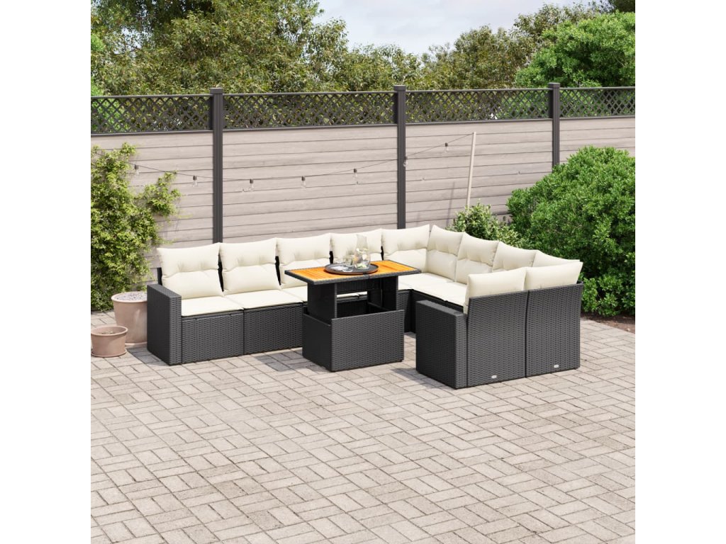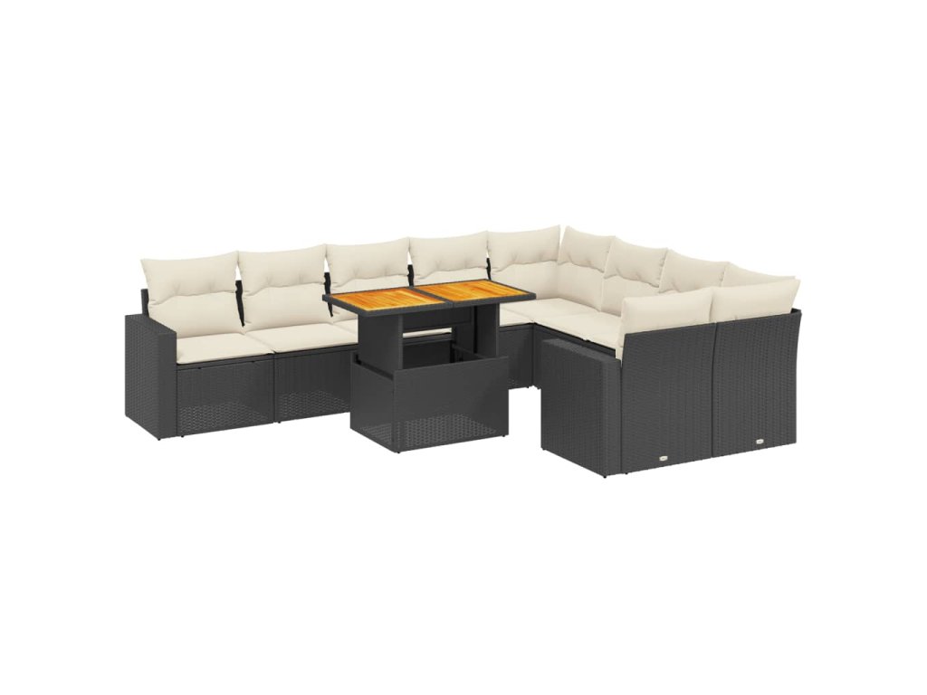 10dílná zahradní sedací souprava s poduškami černá polyratan 3271469